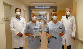 von links: Pascal Noé (Oberarzt der Klinik für Neurologie), Johanna Bensick (Pflegerische Leitung Stroke Unit), Denise Walter (Schichtleitung Stroke Unit), Prof. Dr. Thomas Postert (Chefarzt der Klinik für Neurologie). Foto: St Vincenz-Krankenhaus/Hoppe
