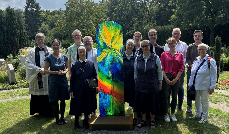 Die gläserne Stele soll Hinweisgeber und Blickfang sein, ein Ort der Trauer und der Erinnerung, aber auch Trost und Hoffnung vermitteln. So lautet die Grundidee der privaten Initiative, die mit Unterstützung der Genossenschaft der Barmherzigen Schwestern vom heiligen Vincenz von Paul dieses Projekt angeregt und gestiftet hat.